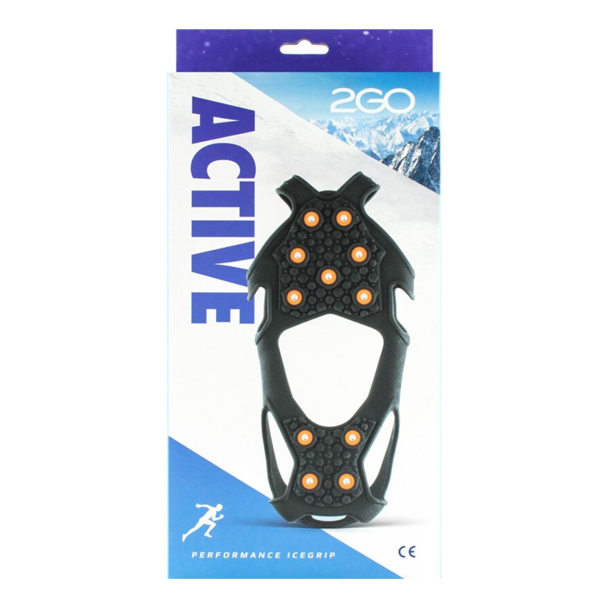 Active Ice Grips from 2GO – studded anti-slip protection with traction studs under the entire foot for secure grip on ice and snow.