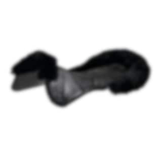 The saddle pad is available at home with natural-coloured or black sheepskin.