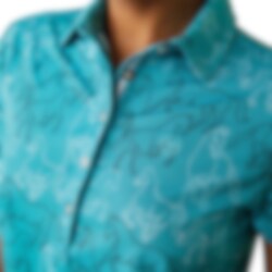 This riding polo is made in a supersoft and wonderful material with short sleeve. The riding pique has several buttons at the collar and an Ariat logo on the chest. The riding shirt is in a lovely blue colour with a cool horse print all over the shirt.