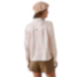 Made from 85% rayon and 15% linen. Togehter, these fabrics create a soft and flexible material that feels comfortable against the skin and drapes beautifully. A versitile shirt that combines comfort wih Ariat's signature sense of fashion and design.