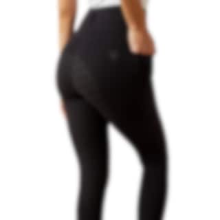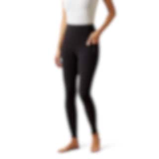 The tights feature a wide, supportive waistband with belt loops for added comfort and adjustability. The black color makes them easy to match with other Ariat Venture garments and creates a sleek, stylish look.