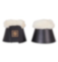 Stylish and practical over reach boots in black synthetic leather with a soft sheepskin trim. Lining of Neoprene fabric and fitted with wide Velcro fasteners. We stock these boots in black and white, sizes L and XL. Other sizes are available upon request. Sold in sets of two. Tips to keep the sheepskin fluffy after washing: Tumble dry your over reach boots at a low temperature for a short while. NB! Your boots may get damaged if you tumble dry them for too long or at a temperature that is too high!