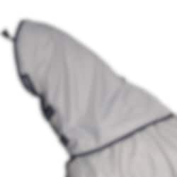 A silver-coloured neck cover for use on Bucas Son Shower Turnout rug.