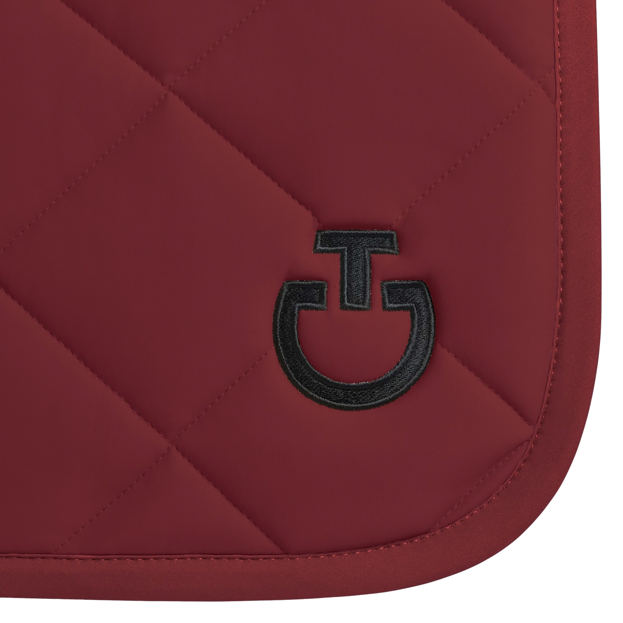 The Diamond Quilted Jersey Jumping Saddle Pad comes in a beautiful red color and features a black CT logo and a black channel along the back with the Cavalleria Toscana logo as well.
