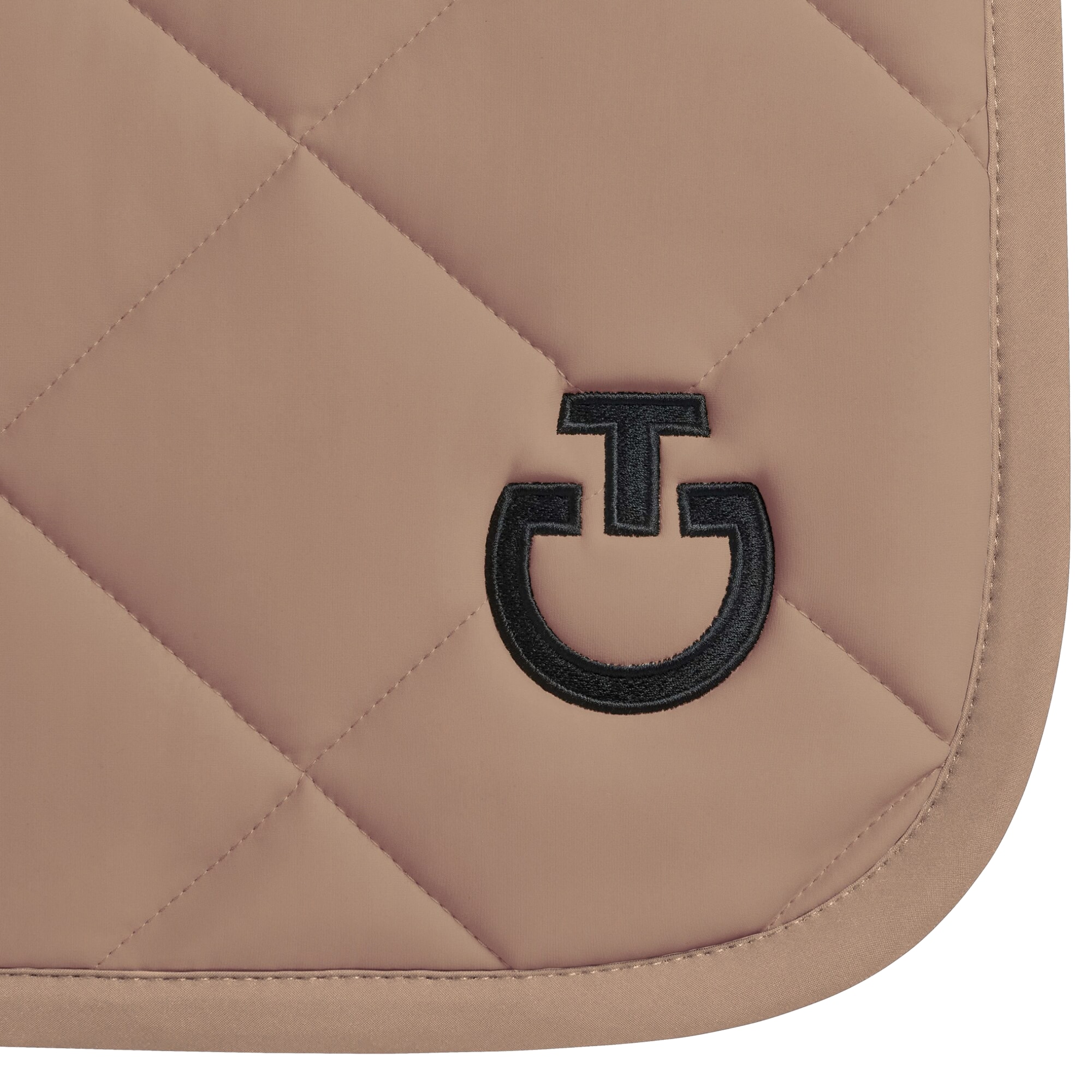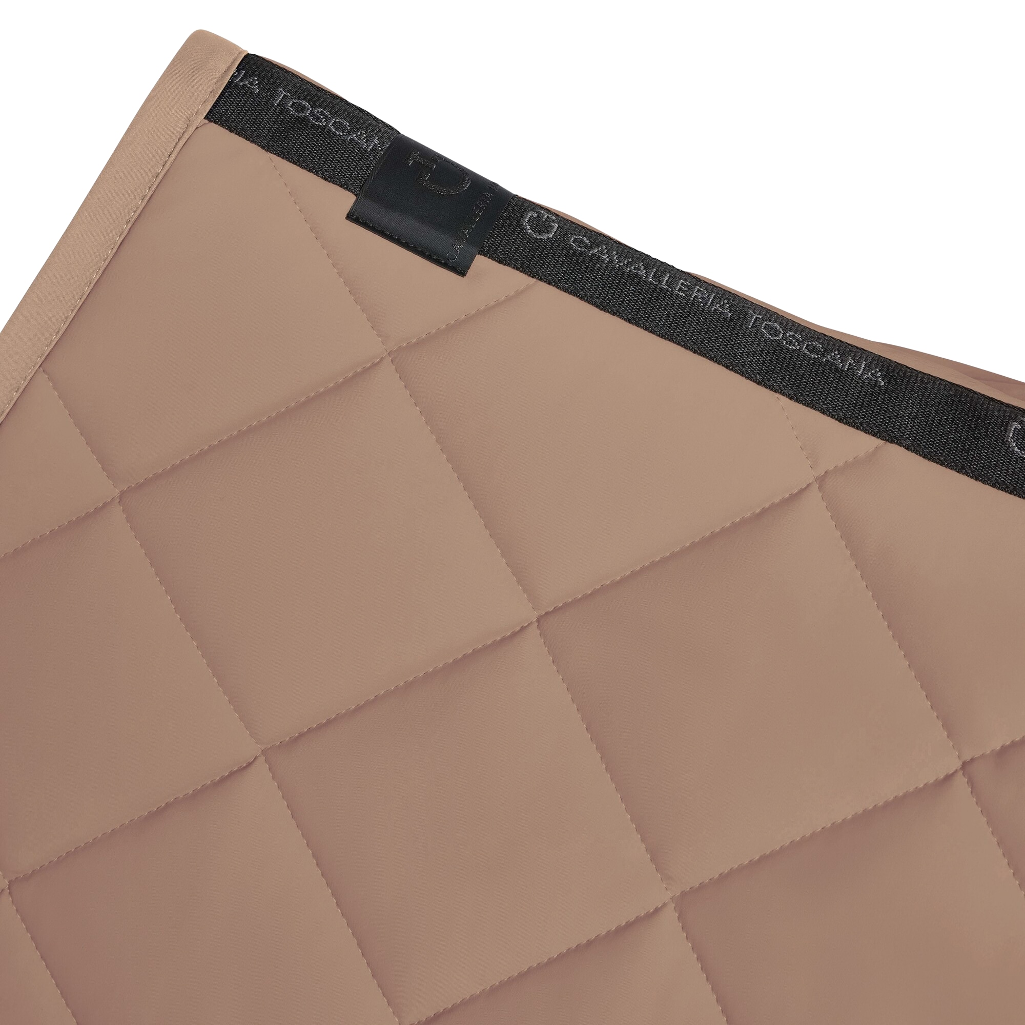 The Diamond Quilted Jersey Jumping Saddle Pad comes in a beautiful beige color and features a black CT logo and a black channel along the back with the Cavalleria Toscana logo as well.