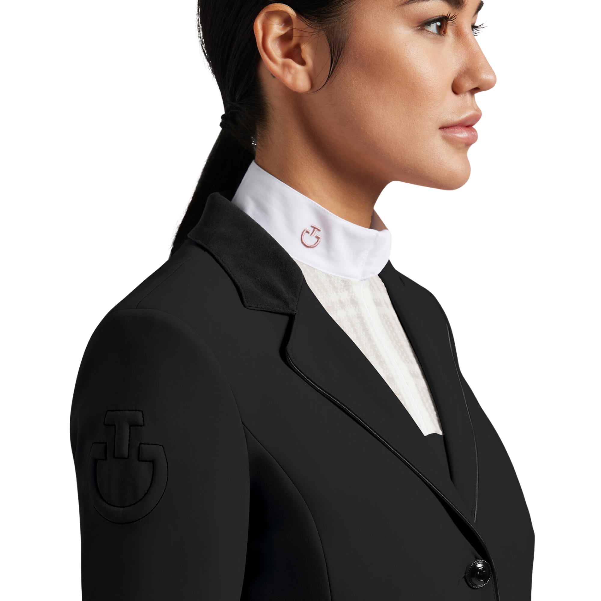 The Black GP Competition Jacket from Cavalleria Toscana is an exclusive choice for riders who want to combine elegance, comfort, and high-performance functionality in the show ring.