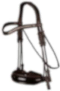 This rolled leather double bridle from Dyón comes with many advanced features such as the ergonomic design, extra wide noseband that tapers off and curves at the sides to reduce the risk of shafing between the bit and noseband and the crank noseband fastening.