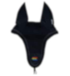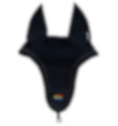 Elegant crocheted fly veil in an extra-long model that attaches to the noseband of the bridle, featuring a sleek design with the E-logo in Rainbow. The veil protects the horse’s ears from insects during summer and adds a stylish touch for training and competitions.