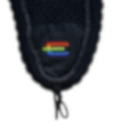Long Fly Veil with Rainbow E-Logo in Black with 6 mm Black Glitter Piping