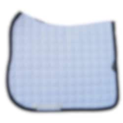 Equiline Octagon Dressage Saddle Pad – White with Navy Blue Edging and Navy Blue Glitter Piping.