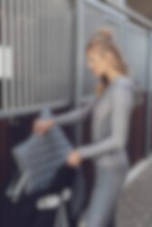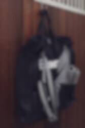 This bag is perfect to use at a competition or in the stable. The competition bag has handles to carry the bag with, three hooks both on the front and back that are perfect for hanging things in. The bag has a strap for attaching a saddle pad at the back and has room for up to 5 saddle pads, or what else you want to fill the bag with!