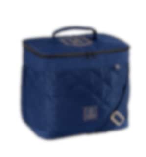 The bag features a zippered lid that keeps the contents secure, as well as internal dividers that help organize and separate different accessories. With a handle and an adjustable shoulder strap, it is easy to carry, making it suitable for use both in the stable and at competitions.