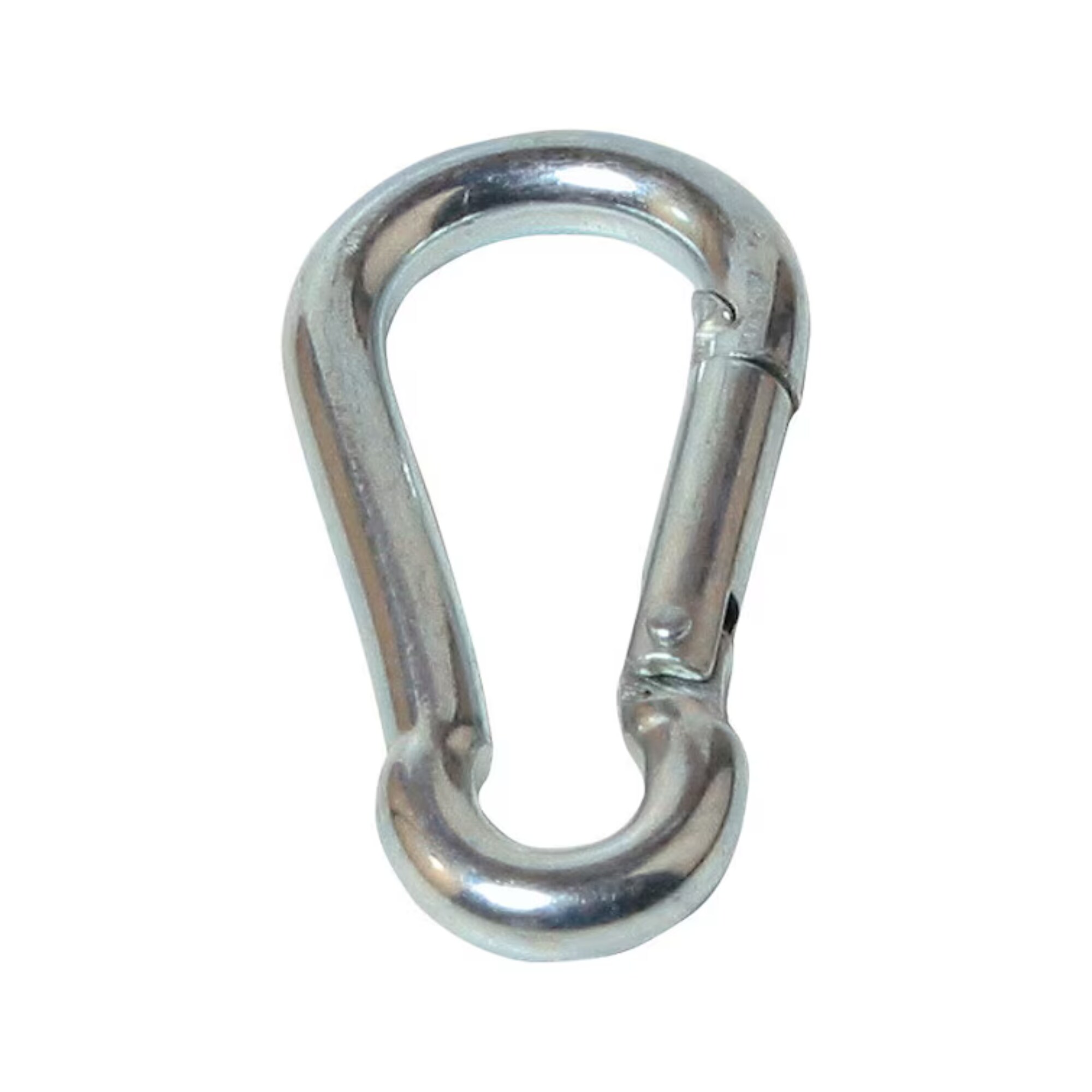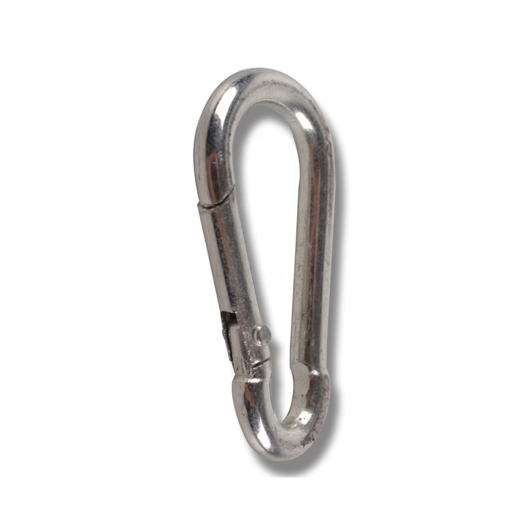 Galvanised fireman-style carbine hook. 10 mm thick with an overall length of 100 mm.