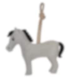 Horse toys have become truly popular and ofcourse we follow the trend, with a cute little horse in a grey color with black mane and tail. The material in the horse toy is durable and rope is used for hanging.