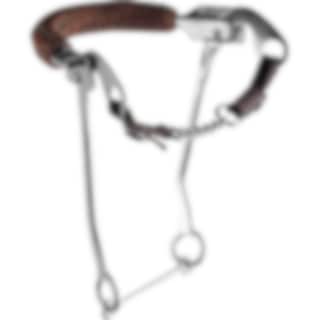Herm. Sprenger's hackamore has long shanks in stainless steel and is equipped with a leather-braided chain over the back of the nose and a chain with a nylon strap under the chin.