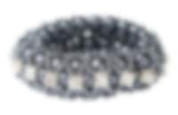 Elegant scrunchie with hidden interlaced rubber bands which makes it look like a beautiful bracelet. This scrunchie with pearls also has a variety of silver stones around. Very fancy and perfect for parties or competitions.