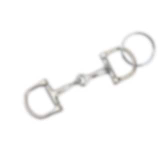 Sleek keychain in a two-part D-ring snaffle with a keyring attached to the bit ring. Perfect for riders who want a practical and elegant accessory for their keys, stable bag, or riding gear.