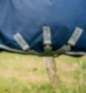 - V-front closure, three cross surcingles, and tail strap keep the rug securely in place