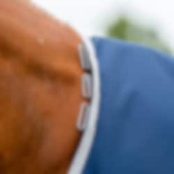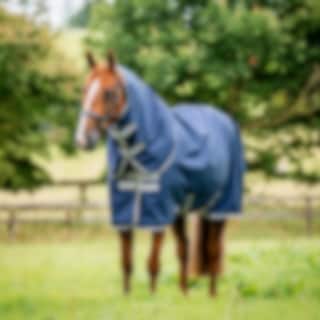 Navy Blue Amigo® 900D Ripstop Turnout Rug 0g – Lightweight, unlined rain rug with detachable hood from Horseware. Ideal for wet, mild weather.