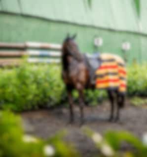 With its classic Newmarket striped pattern, this rug combines timeless elegance with practical functionality, making it a stylish choice both in the stable and at competitions.