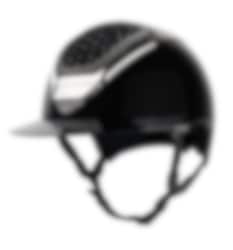 High gloss riding helmet with sun visor, the top IN-OUT is designed with authentic Swarovski Crystals.