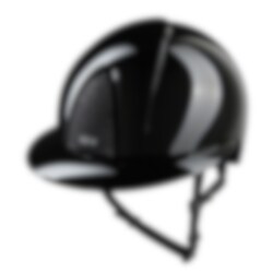KEP Smart Nova Polo Star is a modern riding helmet that combines high-level safety, superior comfort, and Italian craftsmanship. The glossy black finish with an elegant metallic effect highlights the helmet’s details, while the glitter-covered front grid and KEP logo at the back in glitter create an exclusive and eye-catching look, perfect for riders of all levels.