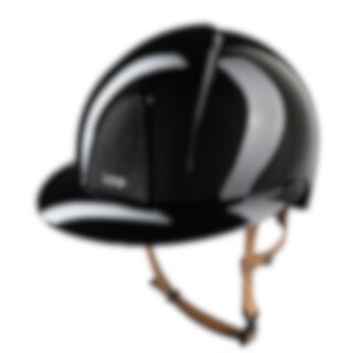 KEP Smart Nova Polo is a modern riding helmet that combines exceptional safety, superior comfort, and renowned Italian craftsmanship. Its glossy black finish, paired with the glittering front panel and the KEP logo in glitter at the back, creates an exclusive and stylish appearance. The beige chin strap provides a sophisticated contrast, completing the elegant design.