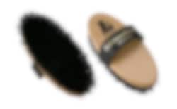 The Schimmel body brush is made of 100% coconut fibres which is of the slightly harder kind, the back is made of wood and the hand strap is made of high quality leather.