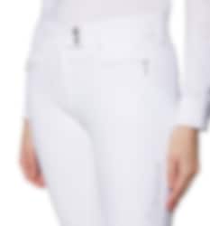 White Samshield Diane women’s breeches in a flexible, stretch technical fabric, featuring elegant Swarovski crystals on the back pockets.