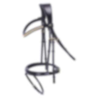 Softly padded anatomical headpiece is shaped to distribute pressure gently over the poll. A classic clincher browband adds a refined and timeless look. Practical quick fastening with press stud and Velcro allows the browband to be changed quickly when needed.