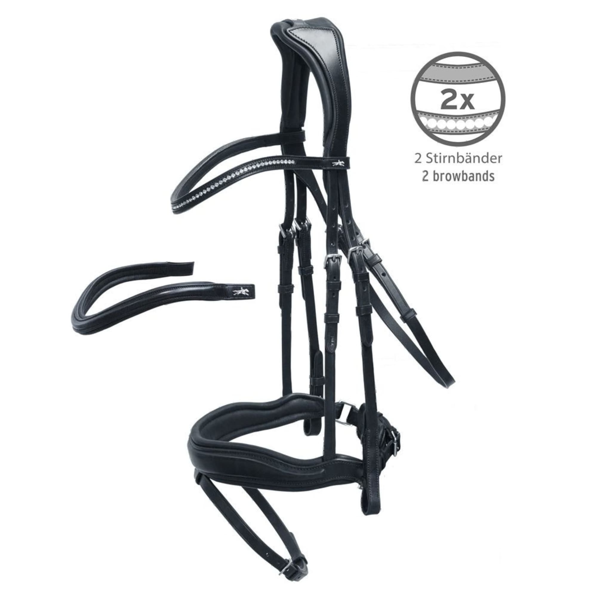 - Two browbands included: one plain leather browband and one slim crystal browband