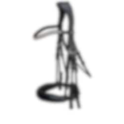 On the Venice double bridle, the noseband is extra wide with tapered curved sides to expose the cheekbone and reduce the risk of pinch injuries between the bit and the noseband, it closes with a pullback. The headpiece is very soft with only a narrow link for the side pieces, the shape of the padding exposes the ears and reduces the risk of pressure against the atlas. The jaw strap has buckles on both sides.