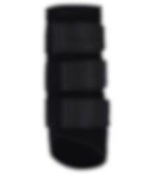 The inner side of the front legs is protected by a hard shell with EVA foam reinforcement, which effectively absorbs shocks and protects against impact. To ensure good ventilation and temperature regulation, the boots are made of mesh material and feature a bamboo lining with ventilation holes around the horse's legs, making them both breathable and air-permeable. The sleek design is complemented by a logo on the inside and a synthetic leather fastening.