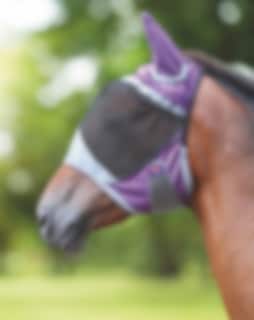 Deluxe Fly Mask with ears and reinforced rails that guarantee free space for the eyes from Shires. Perfect fit as it has an elastic neck and one Velcro strap around the jaw. Padded inside reduces the risk of chafing. The folds at the eyes prevent the material from coming into contact with the horse's eyes.