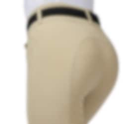 Molveno breeches from Vestrum are exceptionally comfortable, featuring a high waist and full grip seat with Vestrum’s signature pattern. They have two buttons at the waist and elastic leg cuffs for extra comfort. The Molveno breeches are the perfect choice for those who want to look stylish while feeling comfortable, whether in the saddle or at the stable! These breeches come in a beautiful light beige color that suits any occasion.