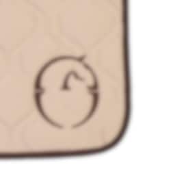 This saddle pad is beige with a brown edge and logo. Perfect when you and your horse want to look extra good!
