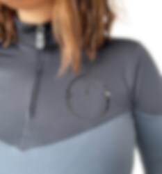 Modane riding top comes in a beautiful dark grey color with black at the top and the Vestrum logo in the same color as the bottom of the top.
