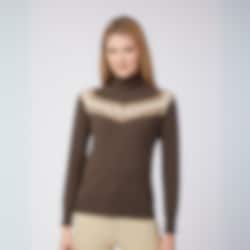 Vestrum Nicosia Knitwear in the color Moro/Sabbia is an exclusive knitted turtleneck featuring a decorative bit motif across the chest in a contrasting shade.