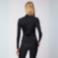 This black long-sleeve riding shirt has a fitted silhouette and stretchy fabric that moves with your body, providing a comfortable and flexible feel. The subtle Vestrum logo on the chest and elegant details make the shirt as stylish as it is functional—perfect for both training and everyday wear