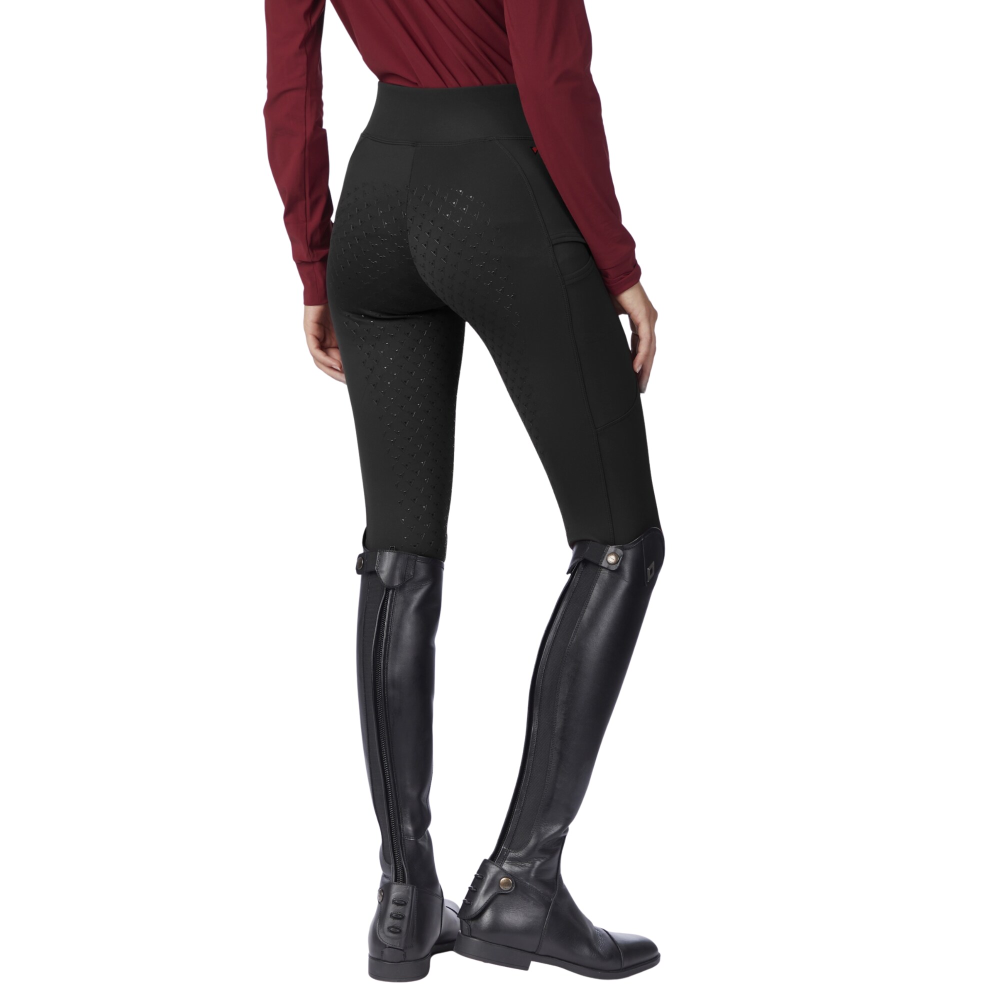 The riding tights are equipped with a phone pocket on both sides of the legs for practical storage.