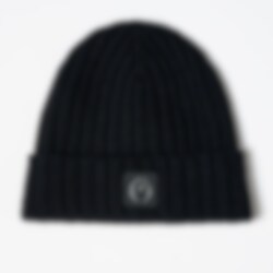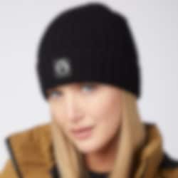 Rib-knit beanie in soft yarn with a folded cuff and leather Vestrum logo on the front. Sleek black design suitable for both everyday wear and the stable.