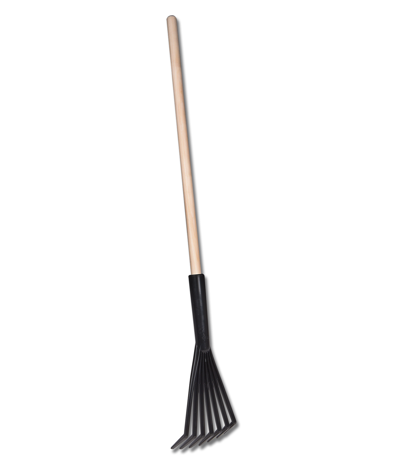 The manure rake is ideal for mucking out stables, outdoor arenas and indoor arenas, as well as in the paddock to help prevent poaching and uneven footing. It is also convenient to use in the horse trailer.