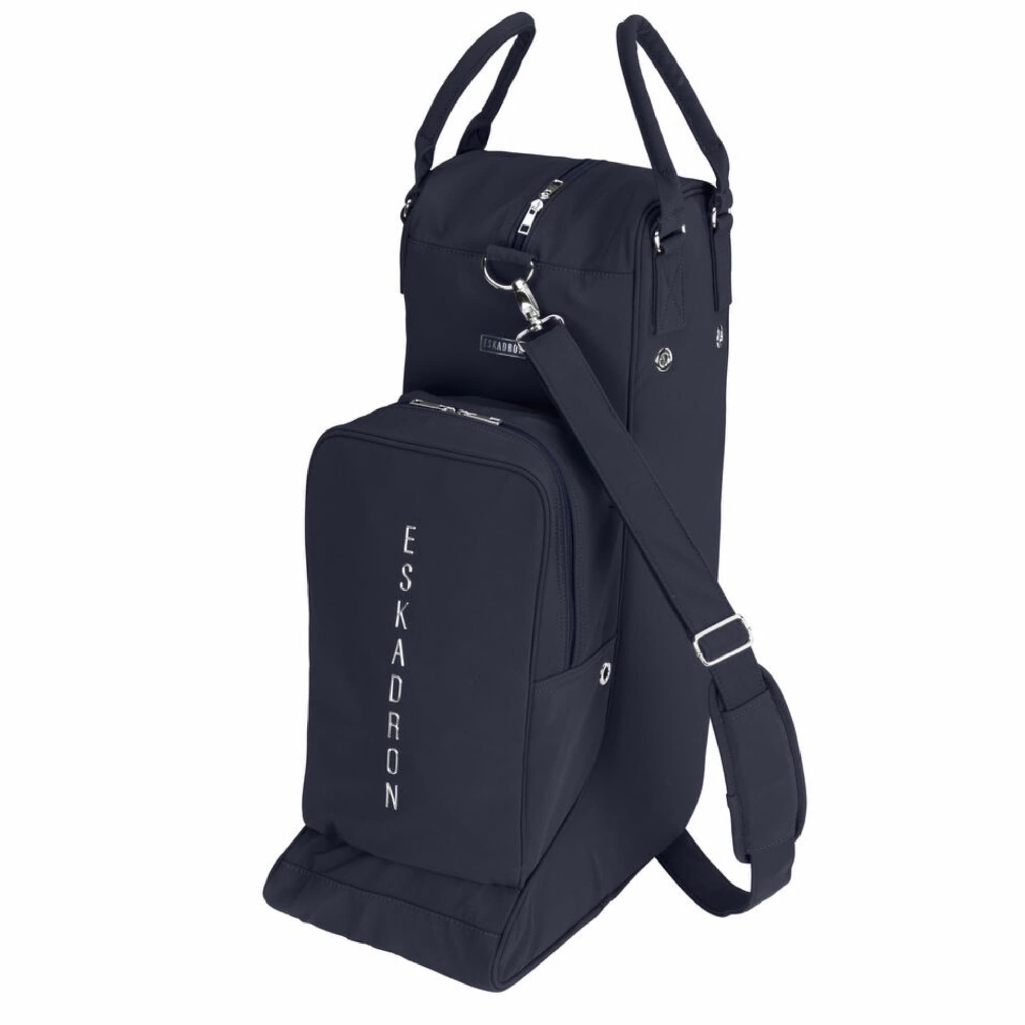 Practical and stylish bag for safe transport of both riding boots and a riding helmet. The bag is made from durable softshell material and features a soft faux fur lining that protects your equipment during transport.