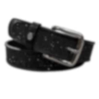 The belt is crafted from Otto Schumacher's premium-quality leather and measures 85 cm in length. It features sparkling fabric crystals in the color Jet and a sleek silver-colored buckle, adding an exclusive touch. The belt has a width of 40 mm, making it a striking yet versatile accessory.