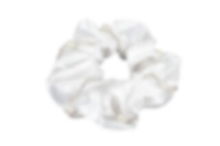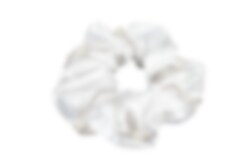 Cute Hair Tie in White Satin with Silver Beads and Pearls. White
