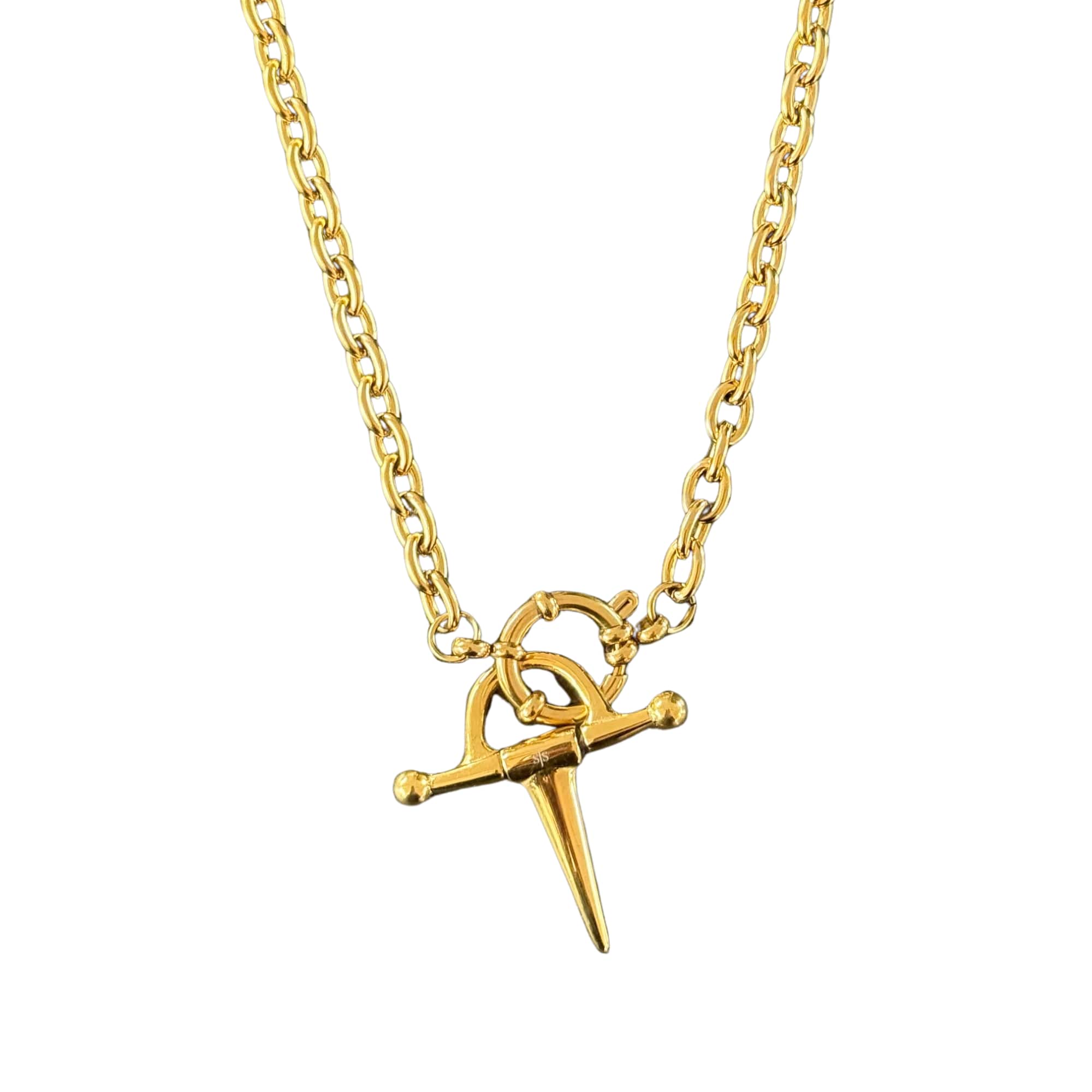 The Bit Necklace in Gold with a Chunkier Chain from SheStockholm is a stylish, horse-inspired piece of jewelry with a design inspired by a bit.