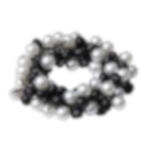 Made with clear thread, it features beautiful white pearls and black faceted rhinestones.