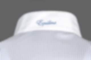 The shirt is fitted, short-sleeved and blue-white with a portion of only white along both sides. Even the collar is white with Equline text in blue in the neck. The text also matches Equiline's logo of three horses that are discreetly embroidered on the left breast. The shirt is very comfortable and perfect to wear in the summer.