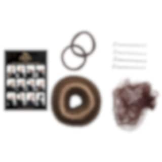 The package includes a hair donut, a large hair net and hairpins. Everything you need to make a nice hair set for the competition. Or to the party.