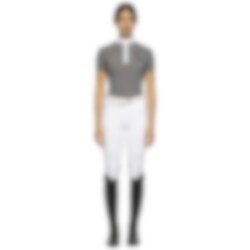 This grey and fine competition shirt is made in a stretchy material, has three buttons in front and a grey Cavalleria Toscana embroidery on the white collar. Team Jersey Competition Polo also has a CT logo in black and red on the chest. Material: 72% Polyamide, 28% Elastane Color: Grey